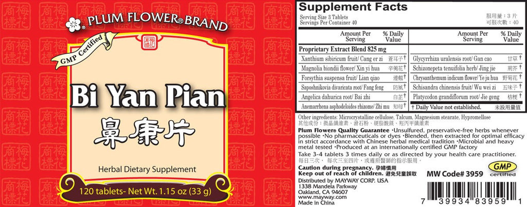 Bi yan pian ,is sometimes called Nose Inflammation Pills, is made from Sulfur free herbs. It's GMP certified. Heavy metals tested. Contains no preservatives, sugar or coloring.